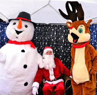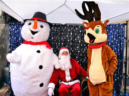 bonhomme de neige, rennes et lutins défilent pour accompagner le père Noël...
